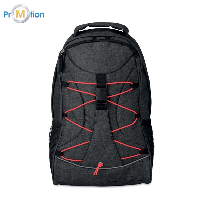 Batoh v 600D 2-tunový polyester s barevným kontrastním lemem a svítící šňůrkou ve tmě. Na obou stranách kapsy ze síťoviny.