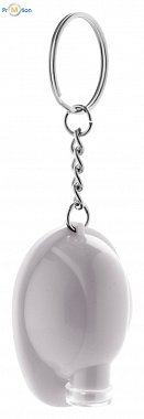 Plastový přívěšek na klíče ve tvaru přilby s LED svítilnou. S knoflíkovou baterií.