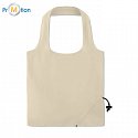 Skládací nákupní taška z bavlny o gramáži 105 g / m² s krátkými úchyty se stahovací šňůrkou na sáčku.