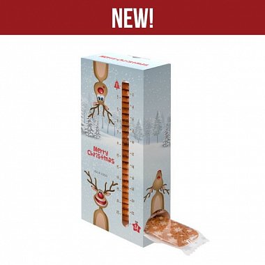 sušenkový adventní kalendář, vyrobený z karamelových sušenek, pro každý jeden den si vytáhněte jeden.Potlač na krabičku vlastním motivem