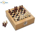 Wine set with chess. The set includes chess pieces, a corkscrew made of metal and wood, a stopper, a thermometer and a bottle ring. Dimensions: 147 x 168 x 55 mm