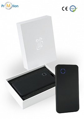 Ray Power Bank / External charger with 4000 mAh capacity. Nice rubberized surface. The product contains a high-quality class A battery (CE, ROHS, FC). It has a charging indicator that allows you to monitor power consumption. Includes a black micro USB cable. Packed in gift wrapping. Choice of different colors with the ability to print logos