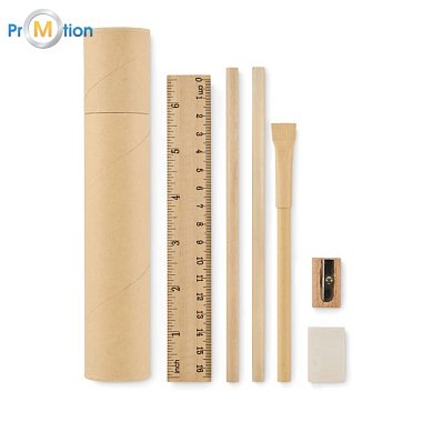 School writing set in a tube with logo print