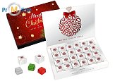 an advent calendar with chocolate with a logo