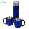 A set of a thermos with a volume of 480 ml and 2 mugs with a volume of 180 ml. Both the thermos and the mugs have a double wall made of stainless steel and an inner wall made of high-quality stainless steel 18/8. Packed in a gift box. Thermal insulation capacity 17 h. Size: 325 x 230 x 80 mm