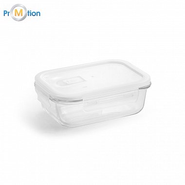 • sklenená nádoba/ dóza na jedlo 600ml, uzatváreteľná, potlač loga 2