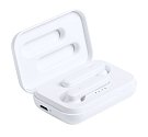 Bezdrôtové bluetooth slúchadlá s funkciou hands-free volanie v plastovej nabíjačke. Vrátane nabíjacieho kábla USB.