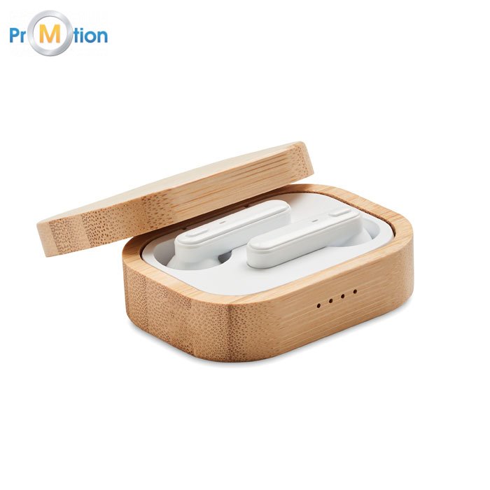 • Slúchadlá TWS v bambusovom puzdre, potlač loga 2