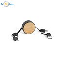 Zatiahnuteľný 5v1 ABS a bambusový kábel. Jeden koniec je USB-C s adaptérom pre USB-A, zatiaľ čo druhý koniec má špeciálny micro-usb a iOS tip 2 v 1 (rýchlo-nabíjací) s adaptérom pre USB-C. Vstup/výstup: 5V/1A. Dodávané v papierovej krabičke.48 x 130 mm | Natiahnutý kábel: 40 x 850 mm