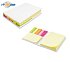 Súprava lepiacich blokov/ post itov , 1 veľký, 1 stredne veľký žltý poznámkový blok a 5 malých farebných poznámkových bločkov, biela farba obalu. Potlač odporúčame na obal. Rozmer: 10,6x8x1,8 cm