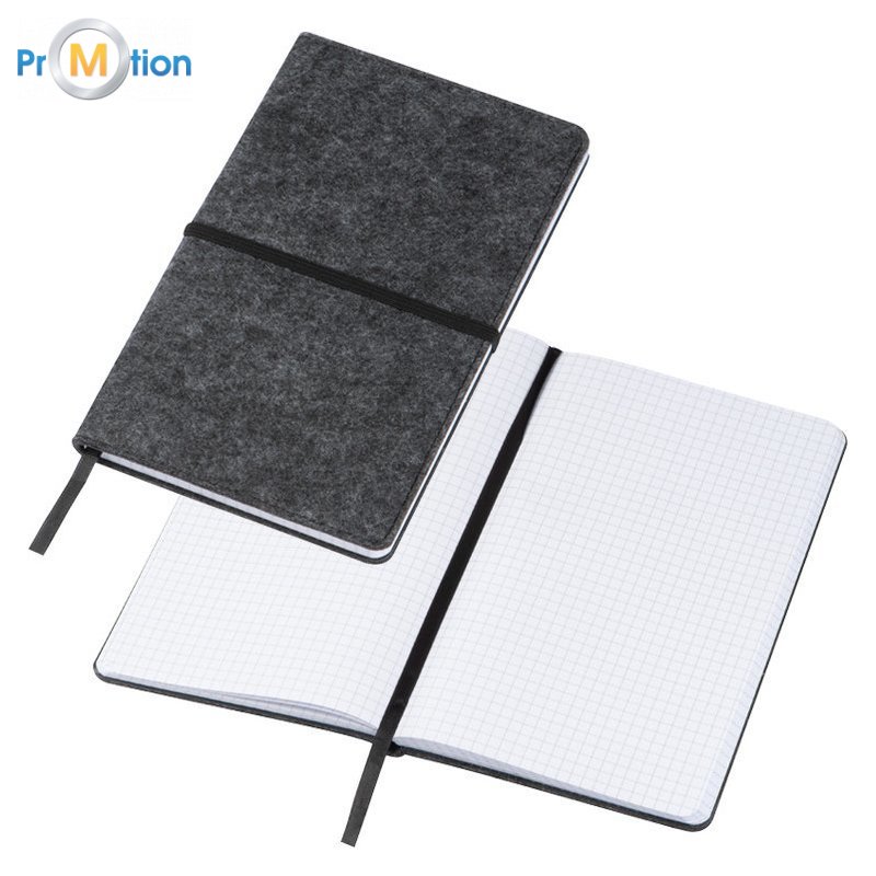 Zápisník (A5) s plsteným vonkajším povrchom, záložkou, gumičkou na uzavretie a 160 kockovanými stranami (80 listov).