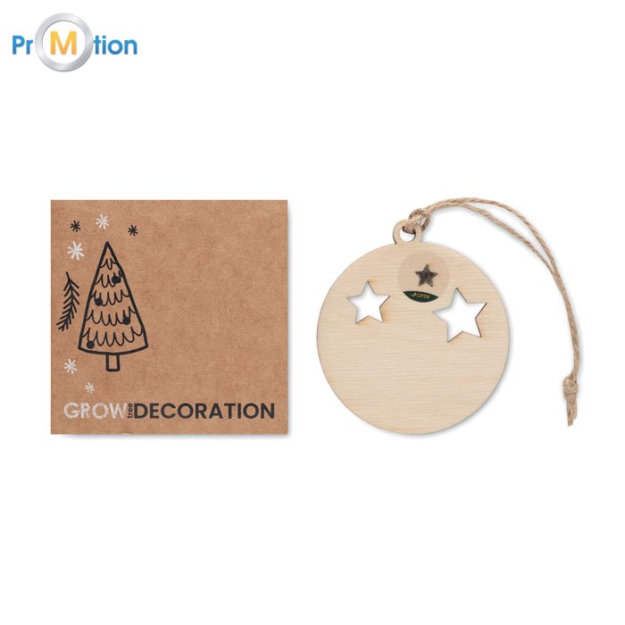 Drevená dekorácia na Vianoce v tvare kruhu/ gule,  s jutovou šnúrou a smrekovými semienkami. Dodávané v kraftovej obálke. Vyrobené v EÚ. Rozmer: Ø6 CM